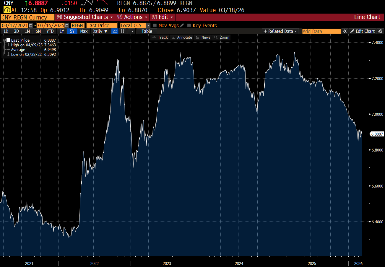 When I think about currencies politically - I see two outcomes coming. One is a bifurcation of the energy system - where Middle East and Russian output largely flows to China and India, while US and Australia output flows to Europe and American allies in Asia. The second is a huge focus on building domestic power sources - from renewables, batteries and nuclear. A secure energy system is now the route to wealth. Iran War makes this even more obvious. China probably leads most of its Asian peers in having a secure energy system - which probably explains why its currency is is much better shape than anyone else’s in the region.