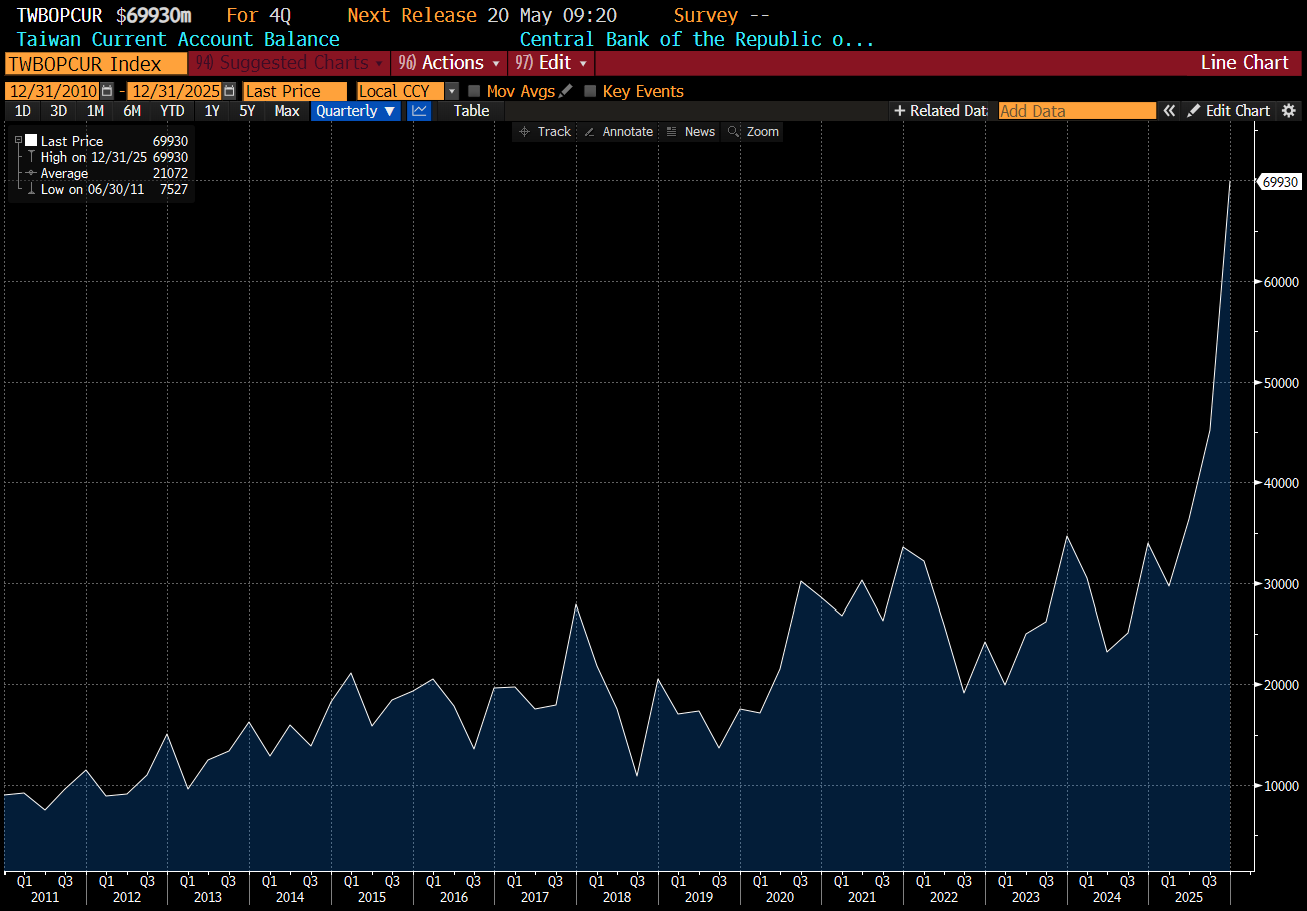 Similarly, Taiwan current account surplus has ballooned.