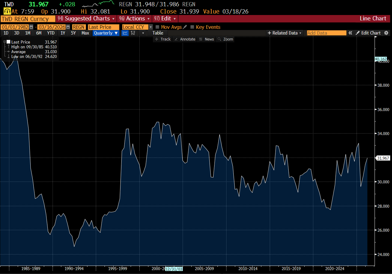 And yet the Taiwan dollar remains unmoved.