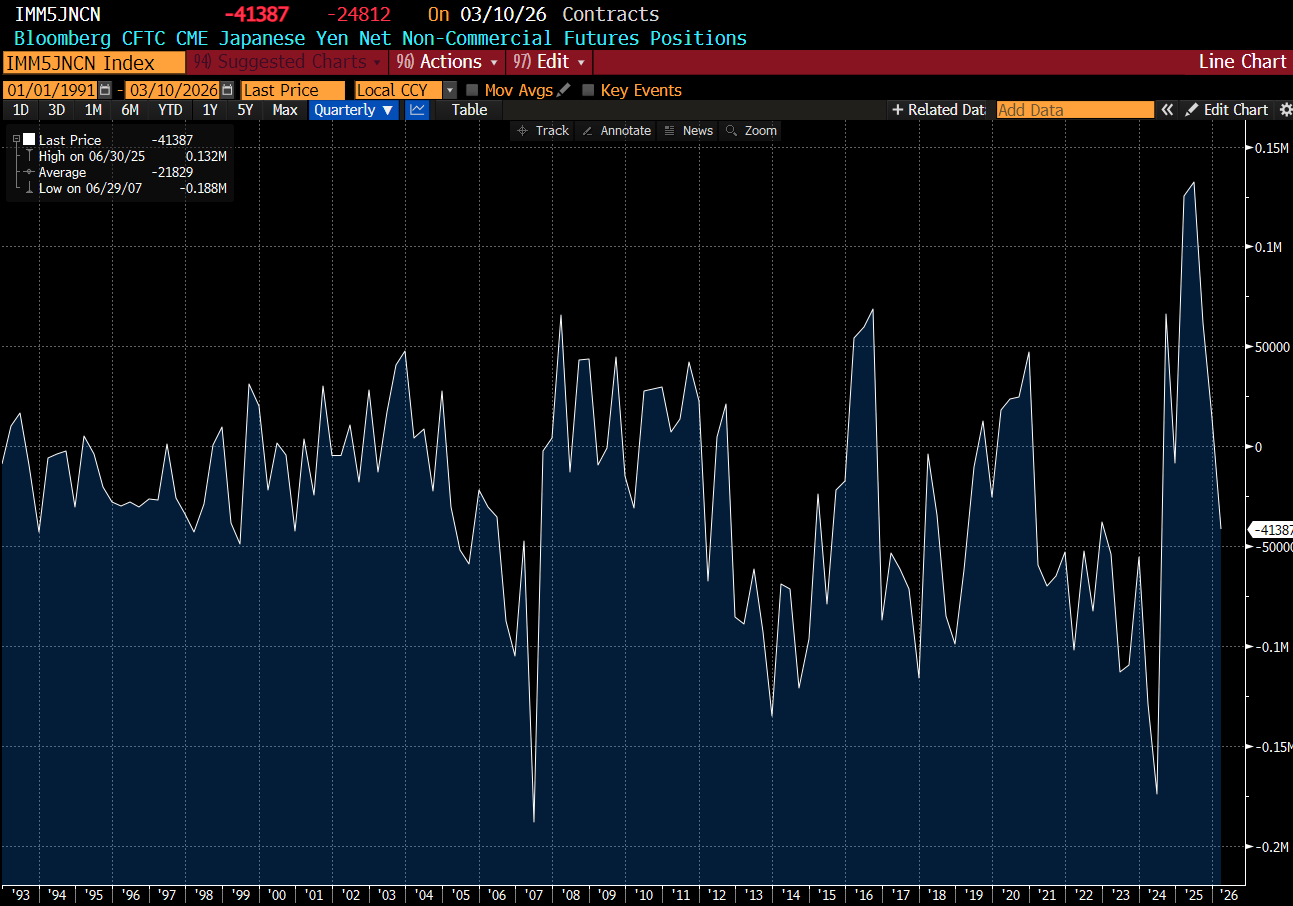 The market was so convinced of this relationship, this led them to record long positions in Yen last last year, which has disappointed again. I refer to long Yen as the new widowmaker trade.
