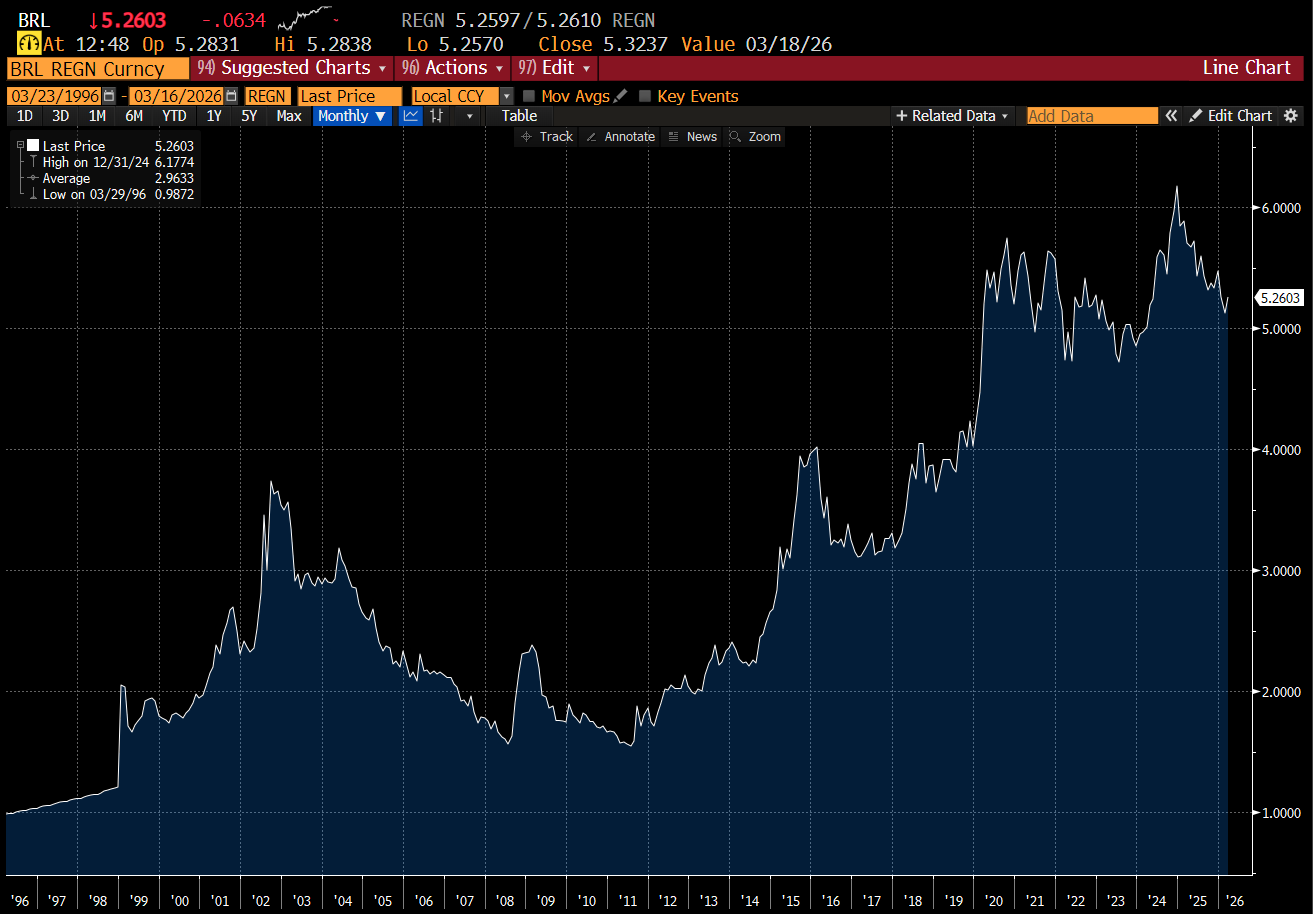 Thinking about currencies from an energy/geo political point of view also seems to work for currencies like Brazilian Real, which is now energy self sufficient. Historically this has not been a strong currency - but it has been surprisingly stable in recent years.