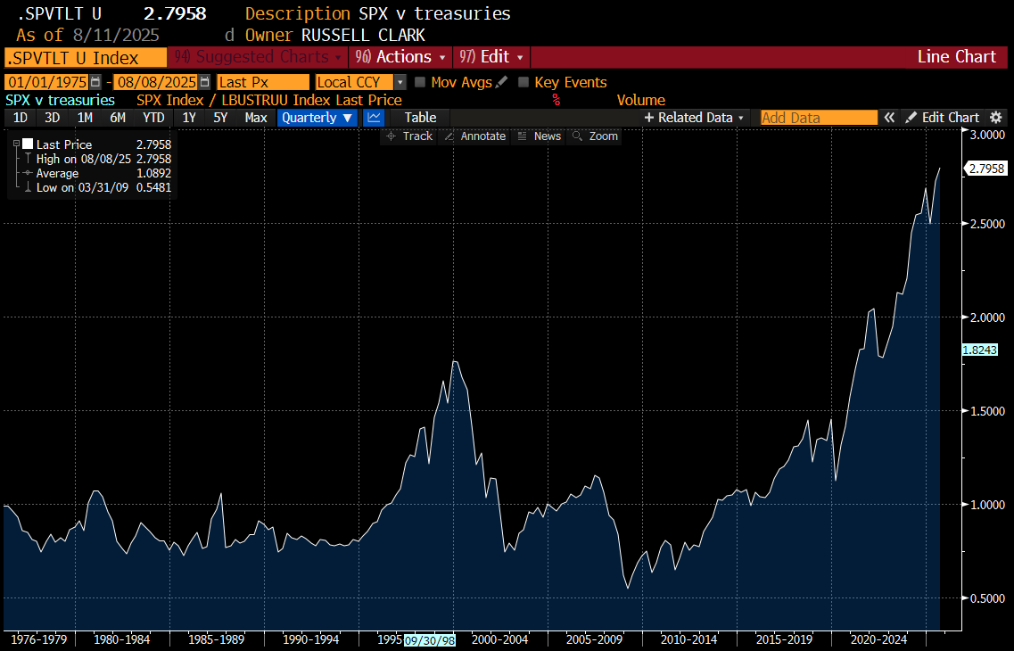 And we are currently living through the longest period of equity outperformance versus bonds. The implication would be to favour bonds over equities is you thought this would change.