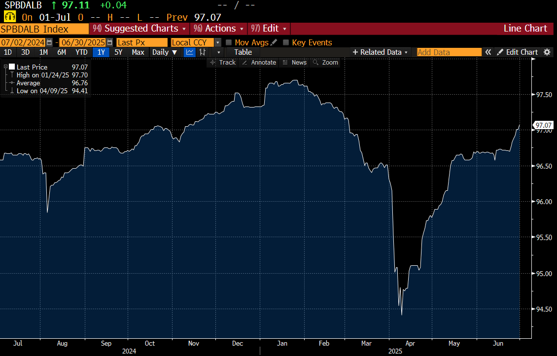 I also think the cost of capital should be rising for US corporate in particular. One proxy for this is HYG. During the month it traded to a new high - so was a real headwind for the short book.