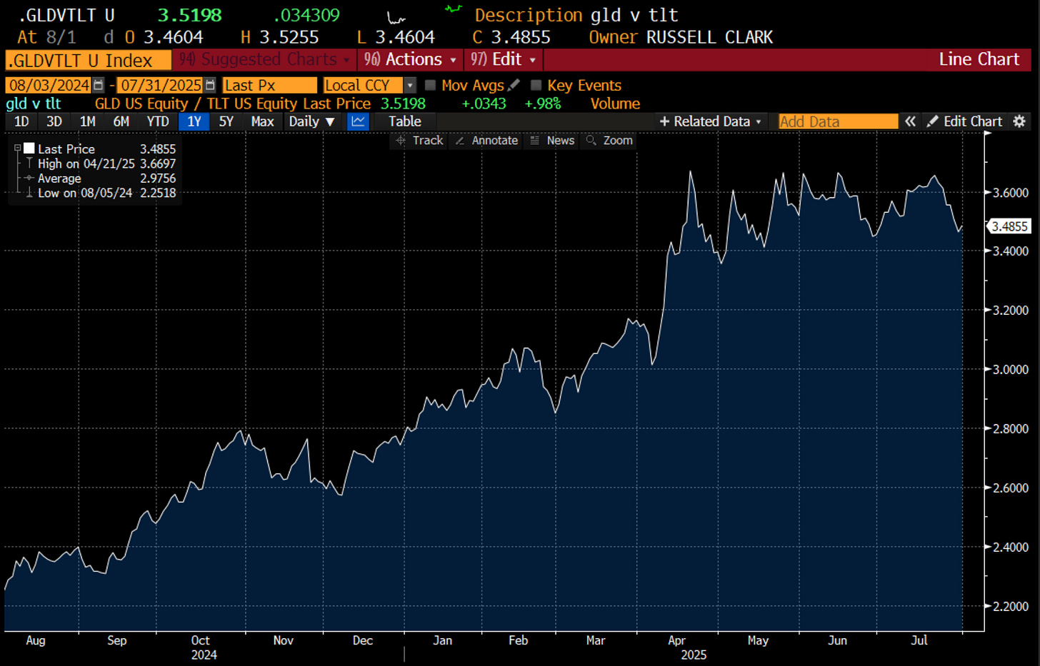 July was a volatile month. The core trade of GLD/TLT broke higher during July, to then pull back in the last week to finish near lows.