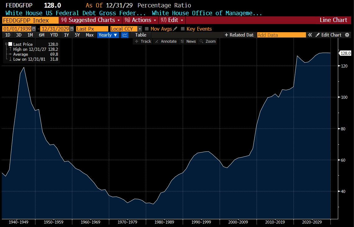 Which has fuelled an ever large amount of federal debt to GDP. Inflation, and soaring stock markets have usually led to falling debt levels, but in this case, it continues to climb.