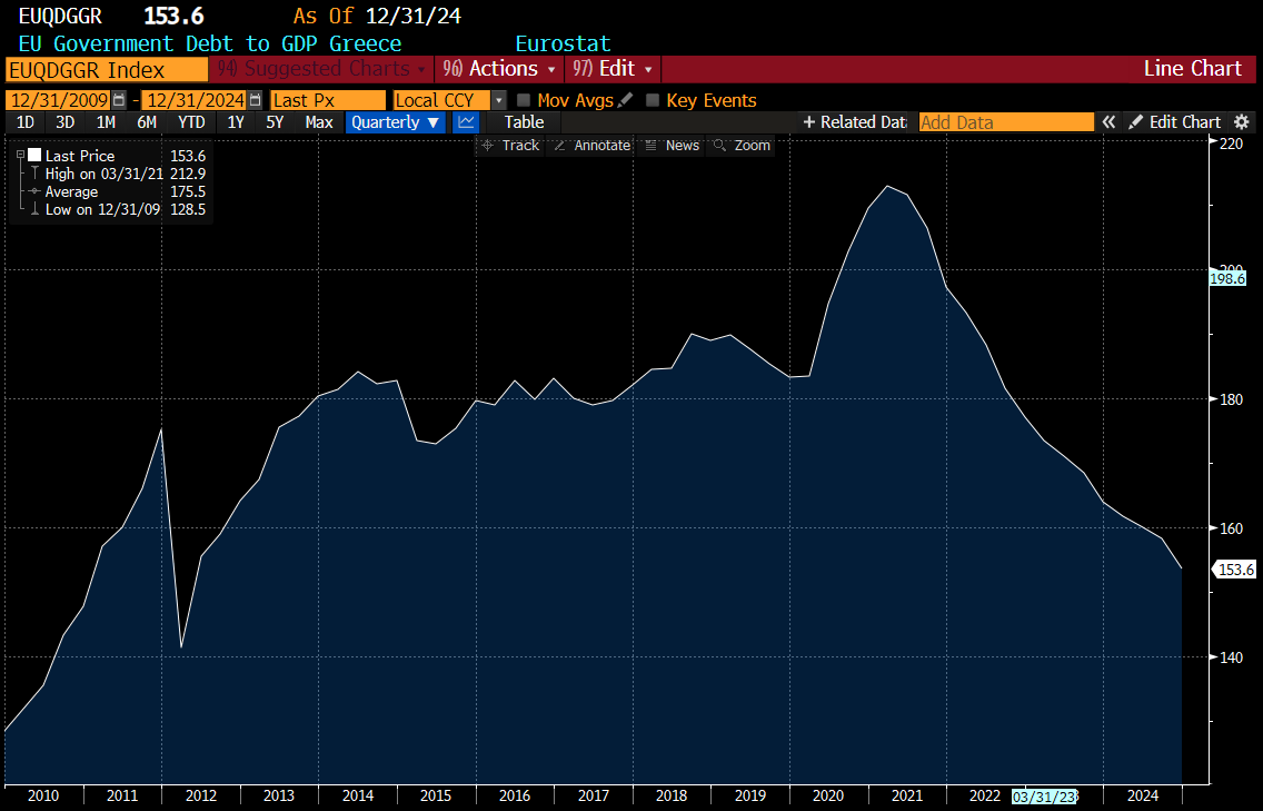 We have already seen something similar in Greece, where decent tax collection combined with inflation has reduced debt levels substantially.