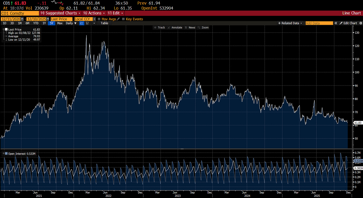 But since the highs of 2022, energy markets have been very weak, even as the Ukraine/Russian was has dragged on. The oil market has been particularly weak.