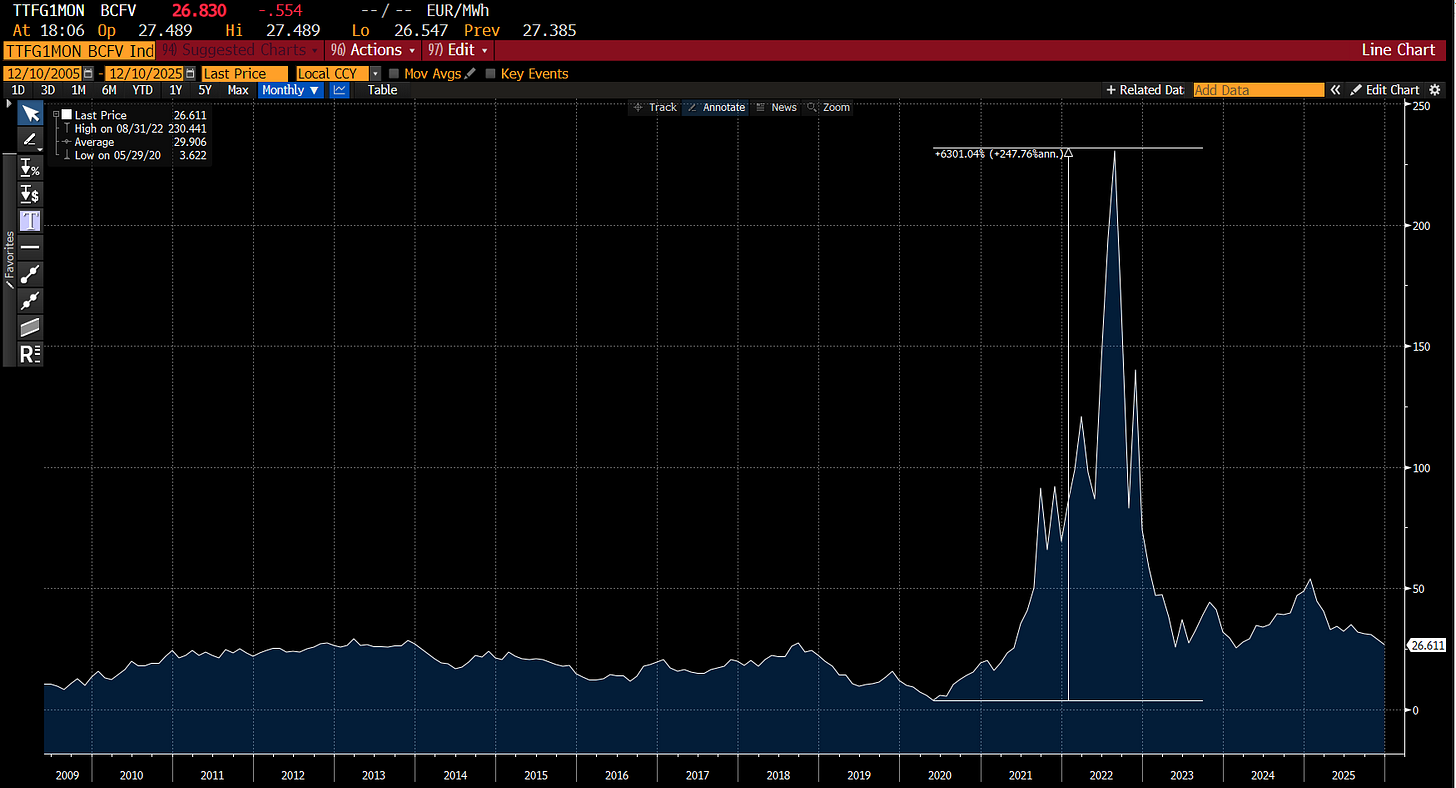 When Russia invaded Ukraine in 2021, we also saw Russian natural gas flows to Europe become curtailed, and sanctions placed on Russian oil producers. There was a huge shock to the energy system, which saw European natural gas prices surge 6000% from 2020 lows.