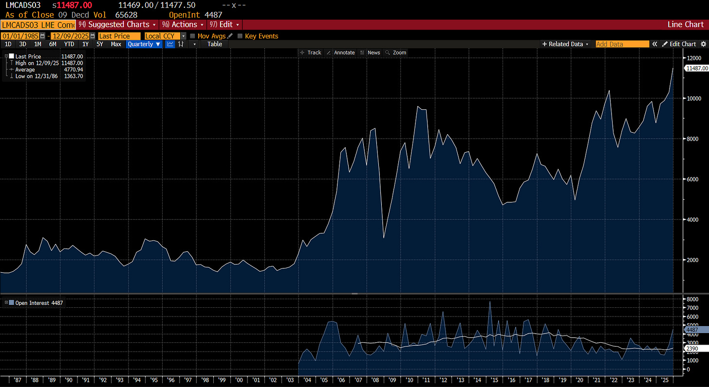 Usually a surging gold to oil ratio suggest an economic crisis of some sort - oil falling with reduced activity, and gold surging as fear drives inflows. However, other economical sensitive commodities are breaking out. Copper is at all time highs.