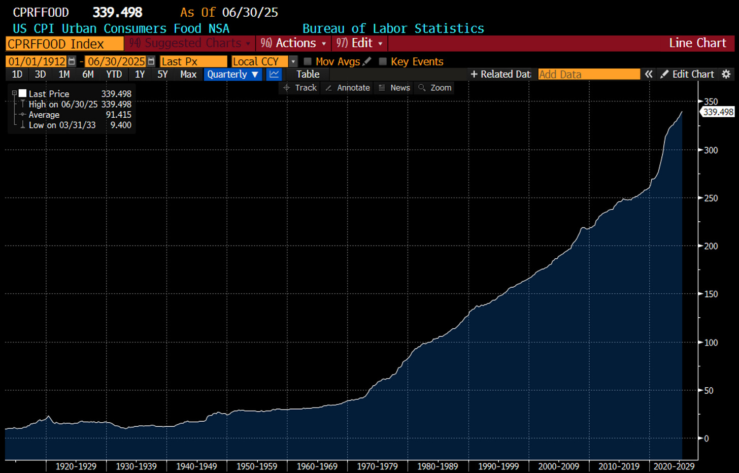 When we compare to the US, we can see the deflationary 1930s clearly, and then the inflationary 1970s onwards. Recent years have seen a sharp acceleration again.
