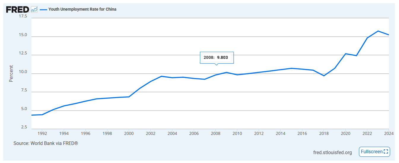 Only one country I know of has seen unemployment worsen in recent years - and that is China. China would be the only country that has seen defaults rise, but also see government bond yields decline and deflation. It stock market trades much more cheaply as well. You should be able to see where I am going with this.