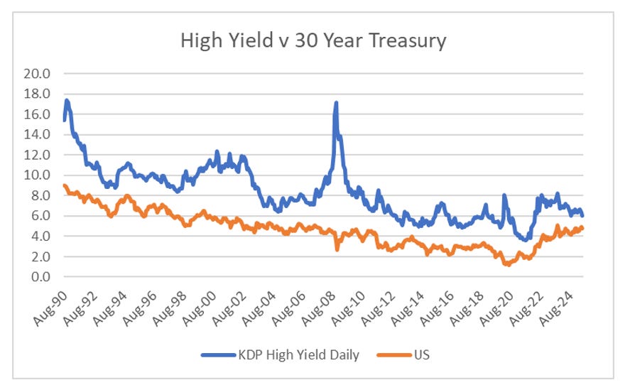 All of this is inflationary - and we are seeing yields rise globally. At some points voters tire of inflation, and business tire of higher interest rates costs, and as a society we accept higher unemployment for lower inflation. When is that point? In the US, government yields are rising, but corporate bond yields have stayed contained, so far. That is treasuries are weak, but corporate bonds yields have been contained.