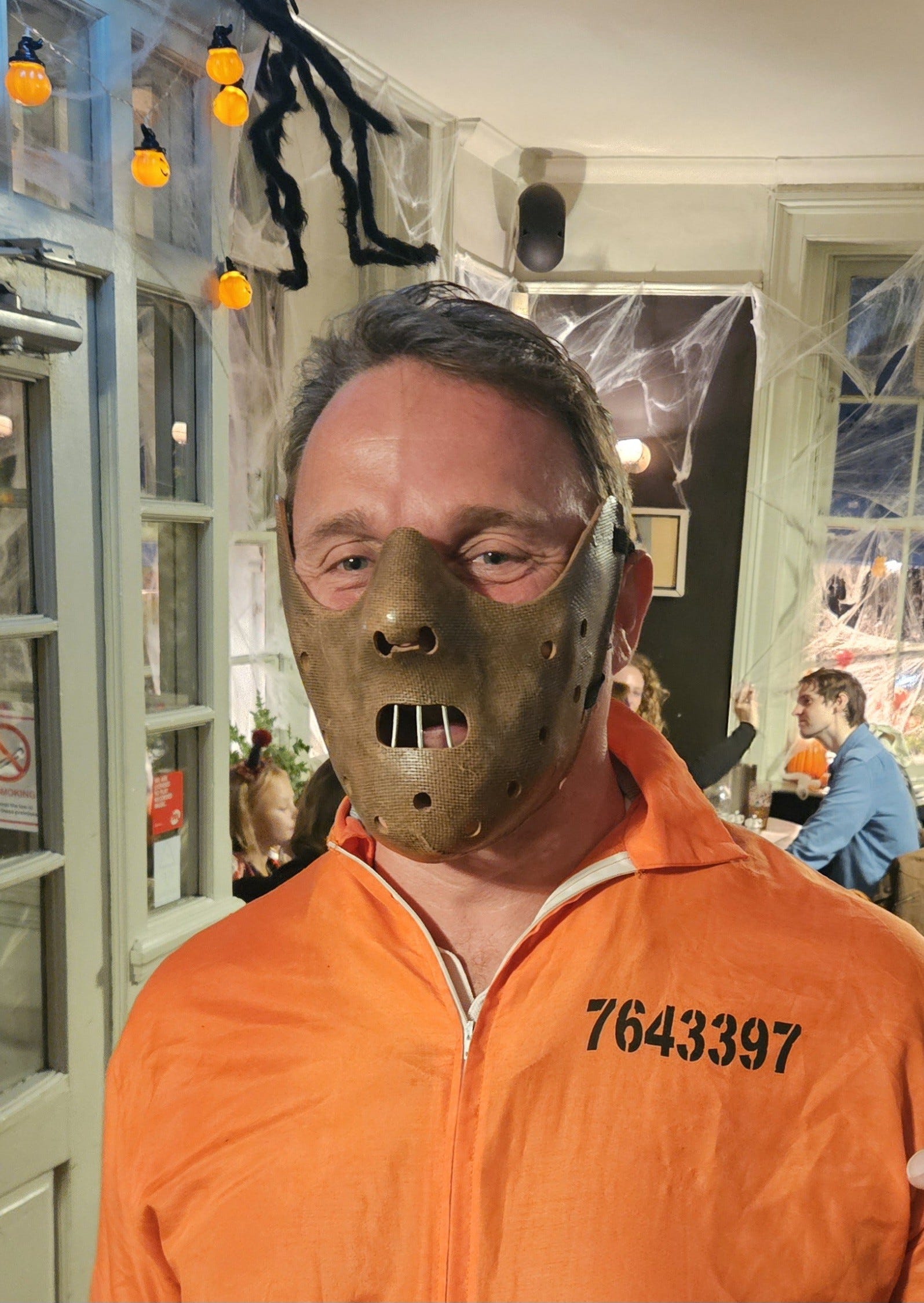 Halloween was last Friday, and my youngest went of trick or treating with his friends, I was left at home all alone. After doling out a mountain of sweets (Halloween is a big thing in my part of London), I decided to go to the local pub in my go to costume - Hannibal Lecter.
