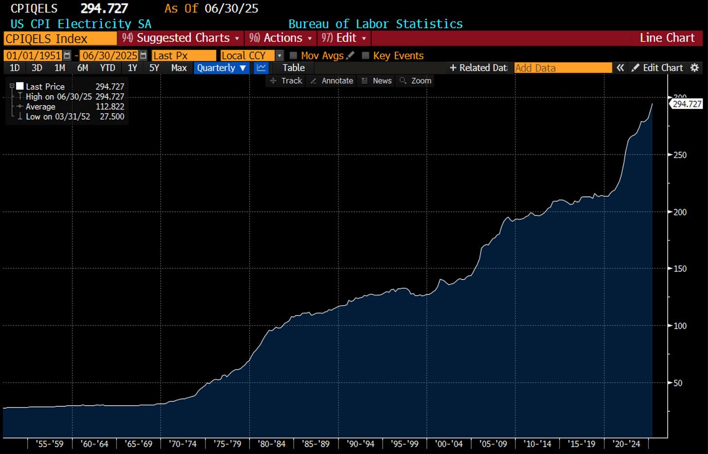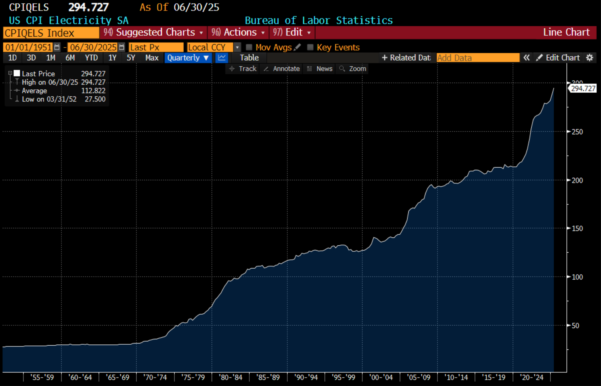 When I look at US CPI Electricity is has the type of movement that I would normally associate with a recession. Businesses and consumers hate rising electricity costs.
