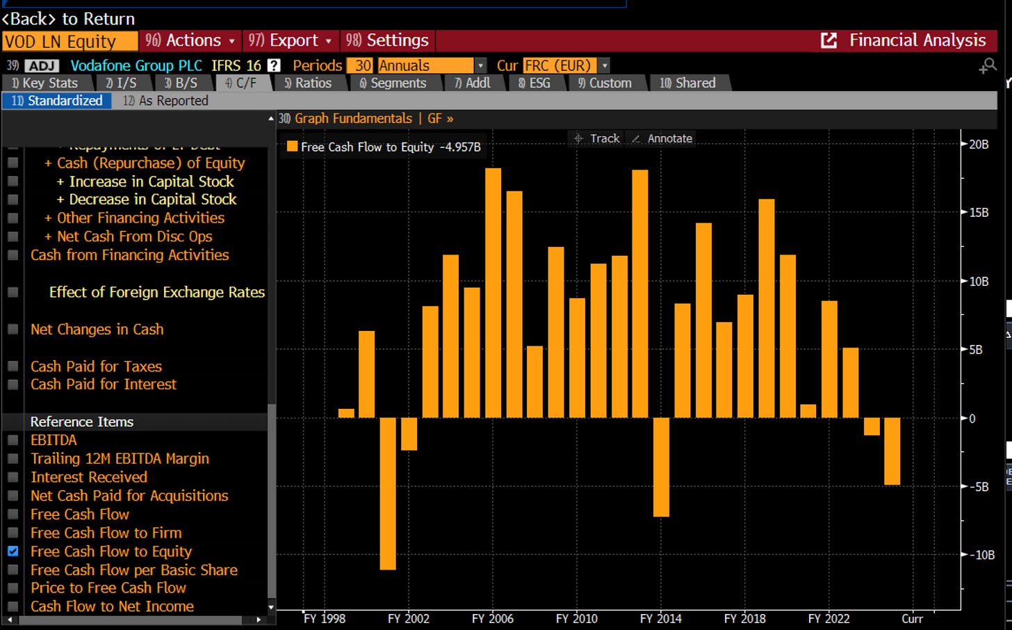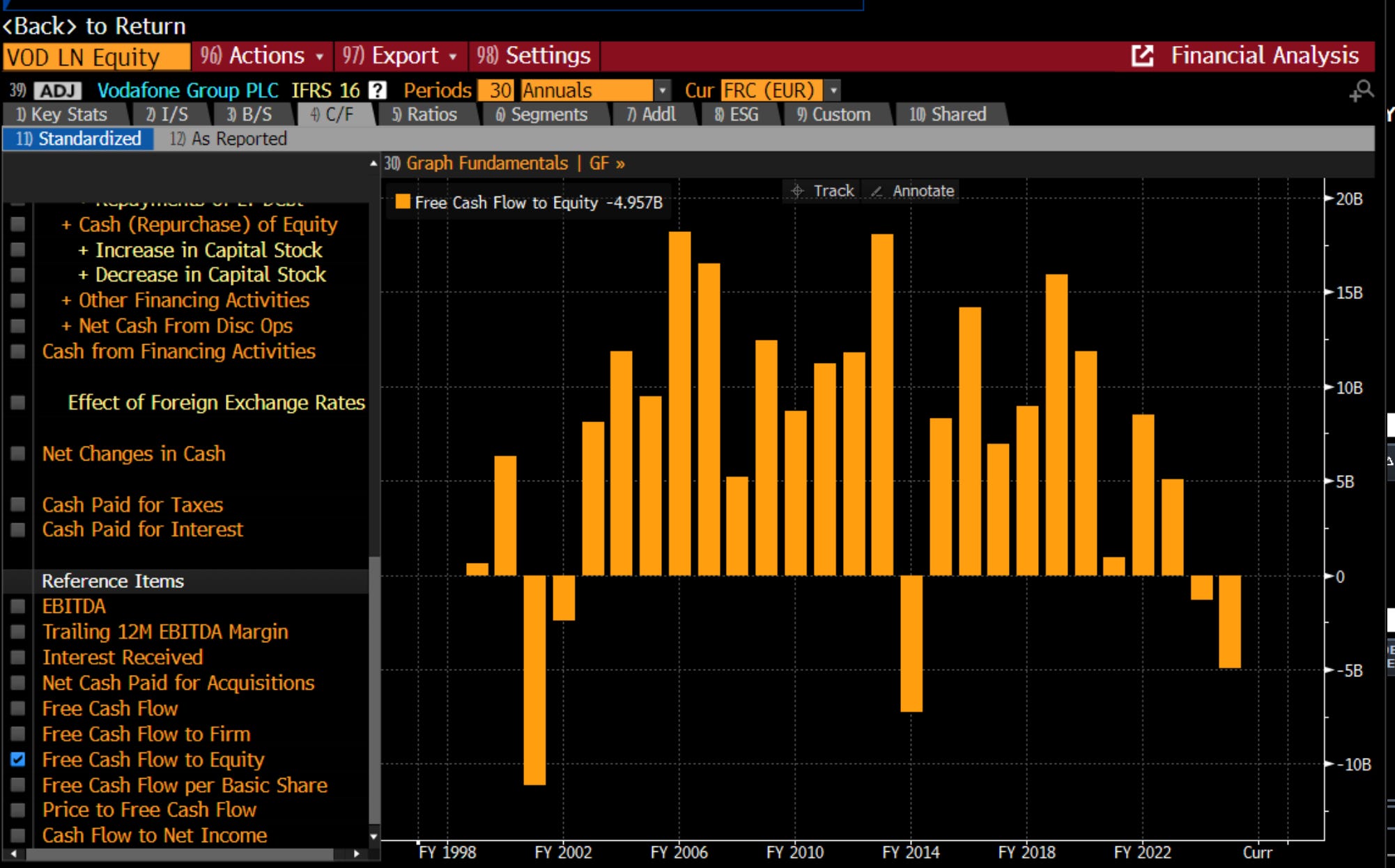 It was falling free cash to equity that really did Vodafone in back in 2000.