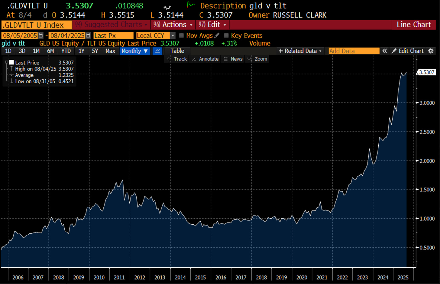 AI is not a bubble, but the demands it is placing on the US economy seem to be mounting. In a different political climate where some Schumpeterian style creative destruction would be seen as a wise choice of action. AI seems real to me, but inflation also seems real to me too. This seems like one of those times when a recession would be good for the US. But as Bureau of Labor Statistics Commissioner Erika McEntarfer discovered anything but awesome is not allowed. Given that rising electricity prices are good for gold, and bad for treasuries, is GLD/TLT working less because the US is a bad credit, and more because politically speaking recessions are no longer allowed?