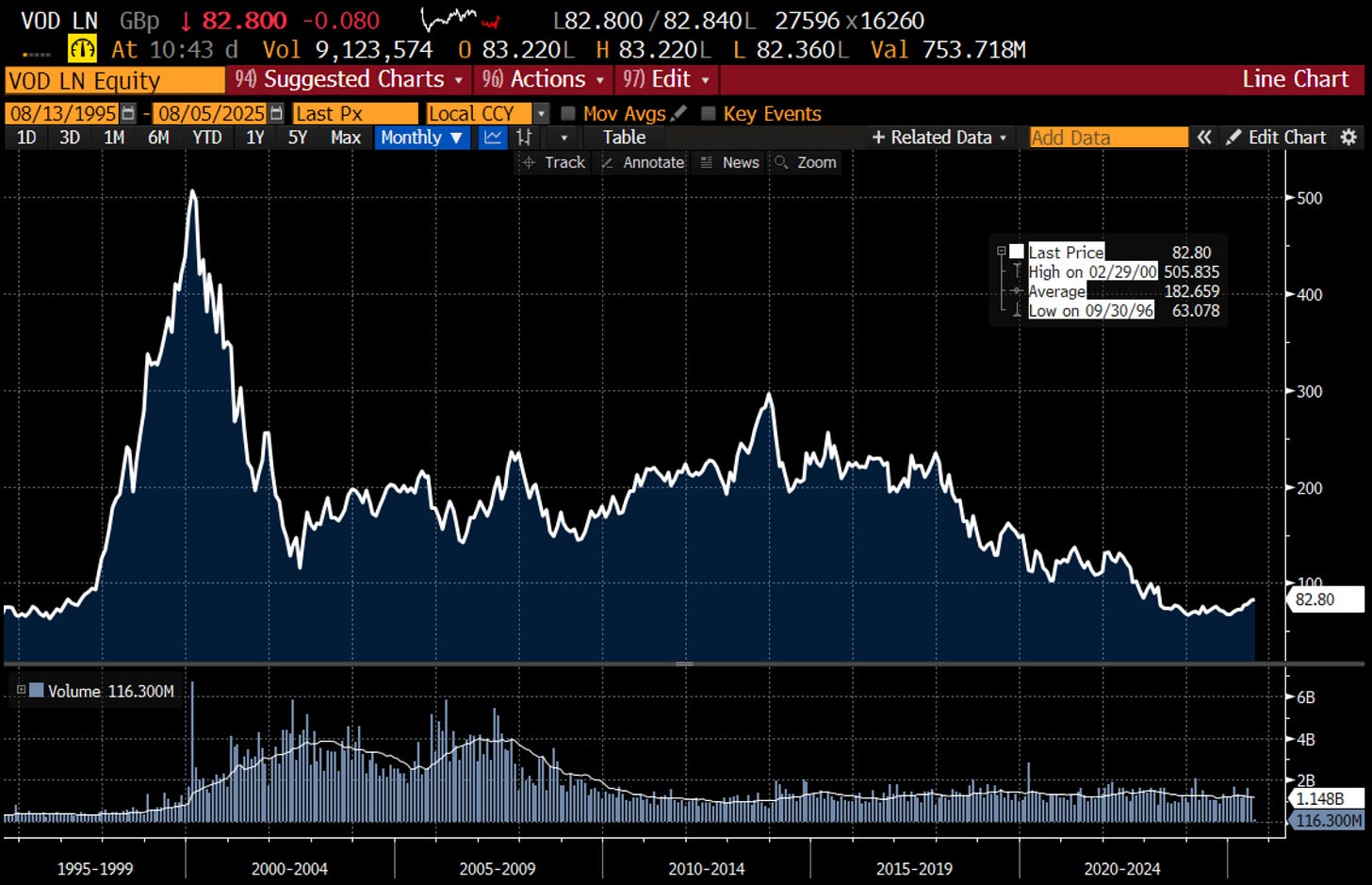 You might want to argue that OpenAI, or DeepSeek are similar crappy companies, but as I use both their products I find that a stretch. There is obvious real demand for what they do. The other type of company that got in trouble in the dot com bust was telecommunications companies that massive overpaid for 4G licences. Vodafone, which both over paid for Mannesmann and licences is a posterchild for this excess.