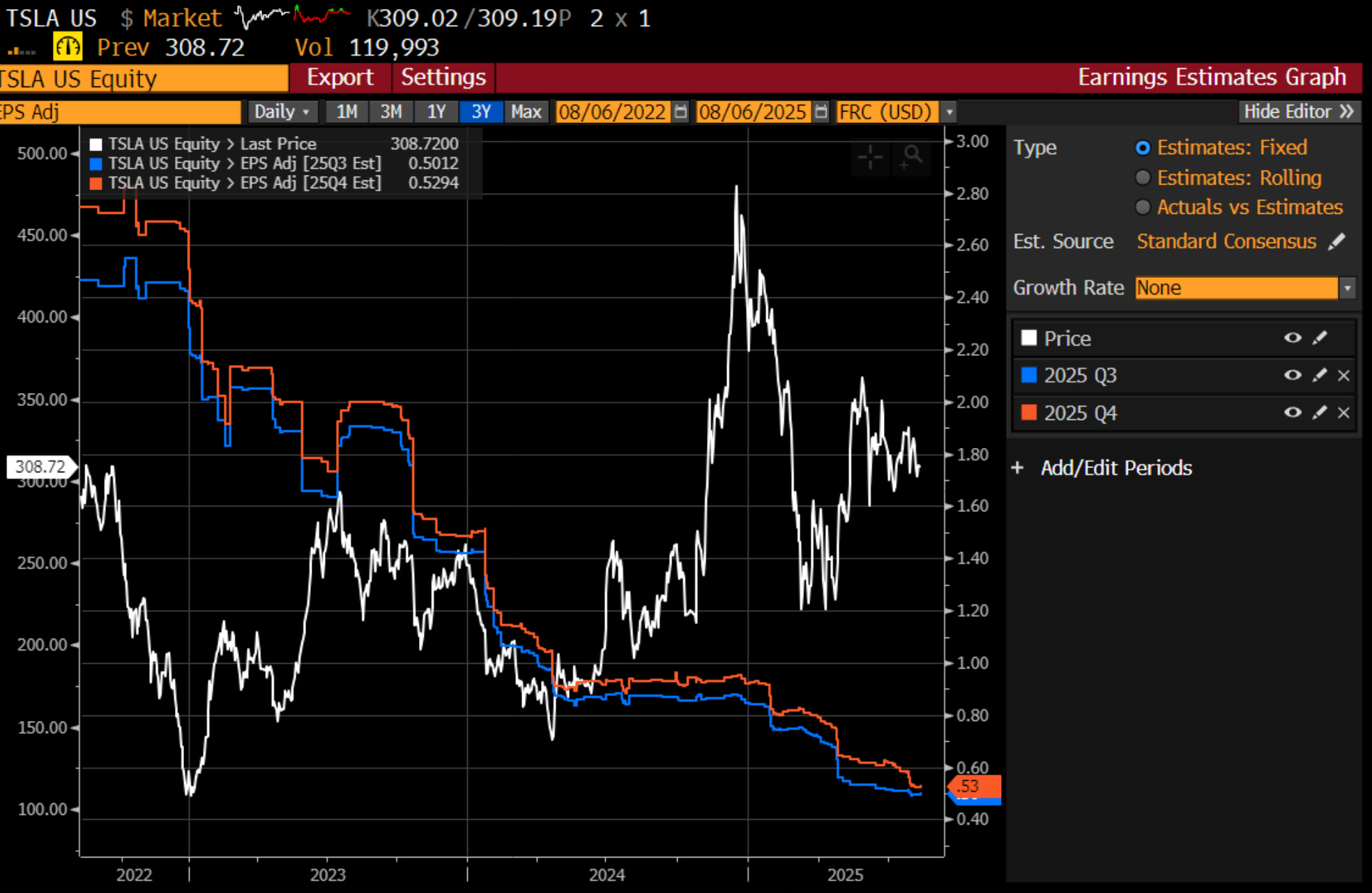What is even more incredible about Tesla is that now that its a reality, it earnings are poor, and the stock still holds up. Usually stocks follow earnings, but not with Tesla anymore. The bulls will tell you that Robotaxi and self driving cars will be the next leg of the bull market in Tesla. Could be. Buy my rule of never shorting dreams still holds true. And in the case of AI, or AGI - this a dream I do not want to short.