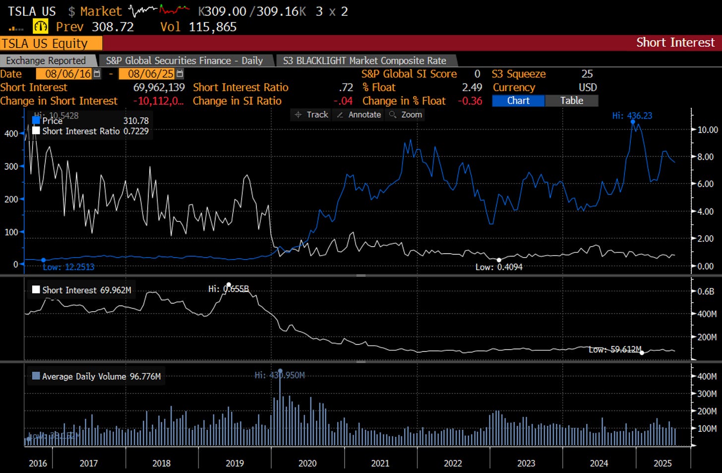 I have also learnt the hard way, is that you should never short a dream. I read many many bearish notes on Tesla, how it would never make money, and was a scam of sorts. And for years it had the highest short interest in the market (see middle chart). But when the dream came true - the short sellers were taken out back and shot.