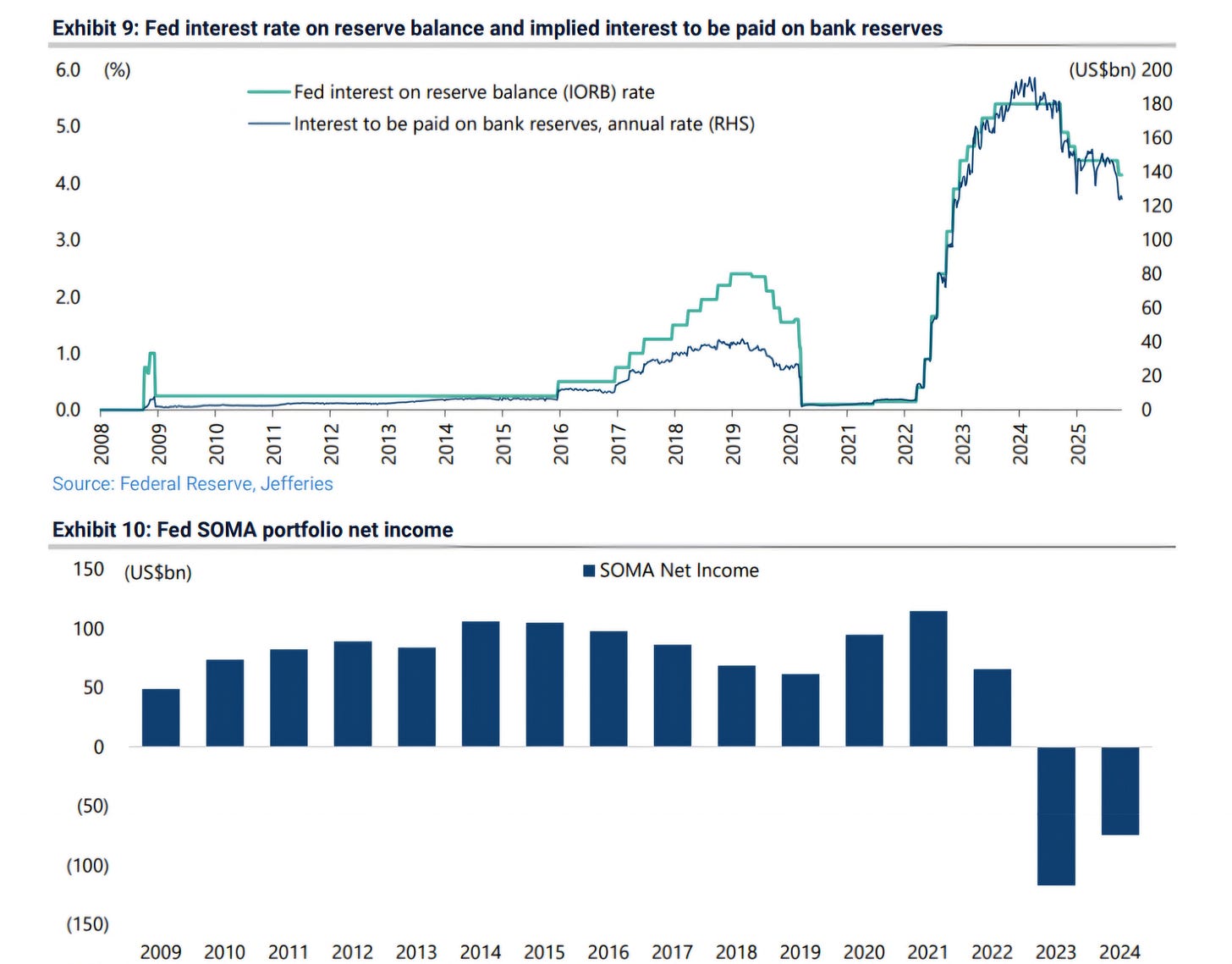 The obvious problem here is the treasury basis trade - something Chris also sees. And as I have mentioned the Fed has come under political pressure. One thing I had not picked up.was the scale of losses that the Fed now has due to paying interest on bank reserves. I mentioned in a previous post the move to a negative primary income balance was driven by higher interest rates. This is sort of saying the same thing.