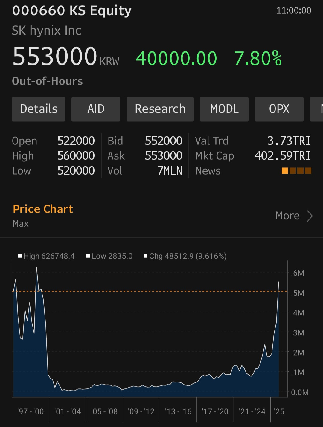 If Chris is right about loosening and I am right about semiconductors as the new oil then tech should fly higher. As I write this, Korean semiconductor company SK Hynix is approaching an all time high. Long time Asia watchers should be as surprised as I am.