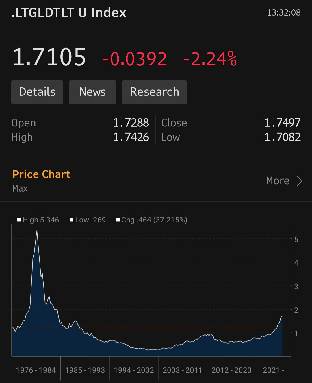 What I like about the Treasury short here is that it should work in a bear market driven by the unwinding of the basis trade AND in a Chris Wood predicted dovish turn in the Fed. Maybe this is what is needed to get back to 1980 levels on gold/treasuries.