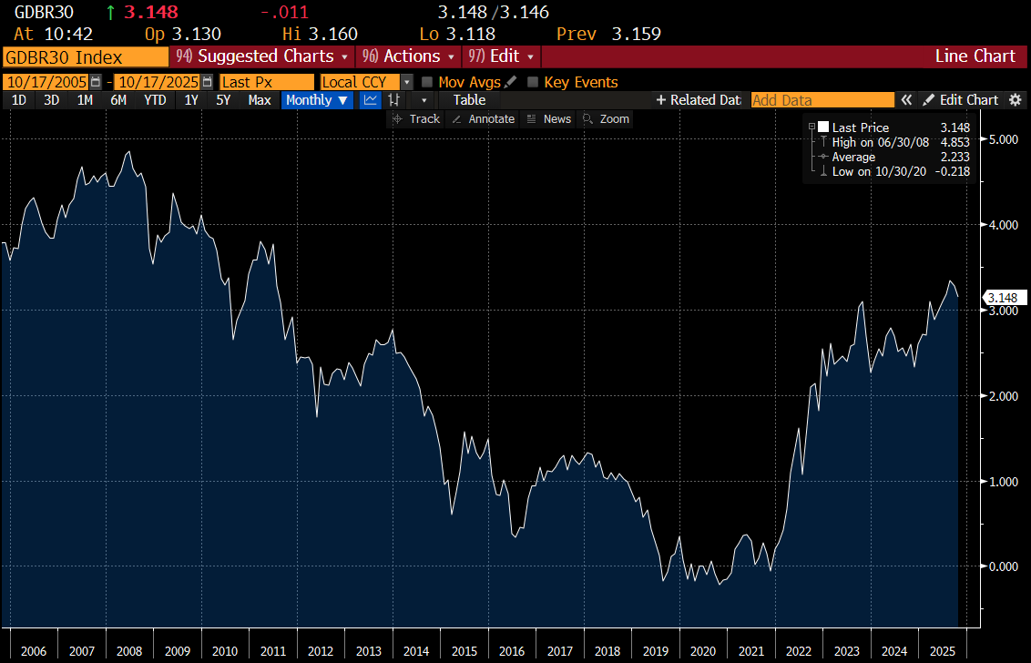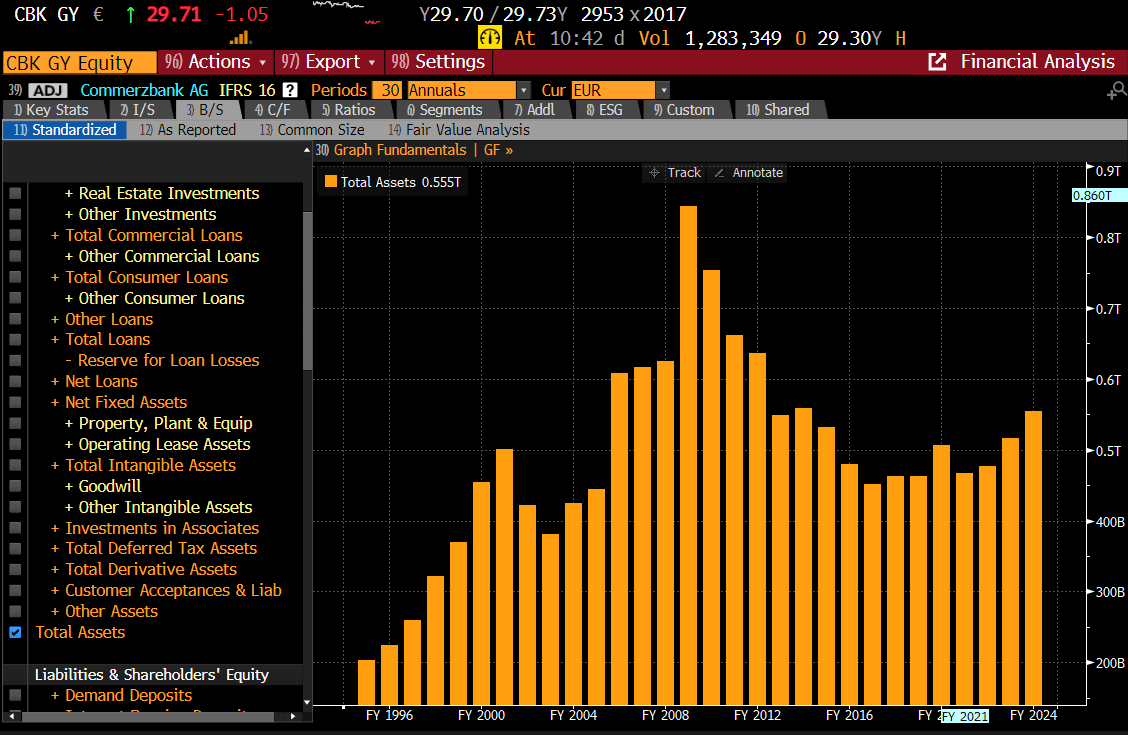 The macro problems with German and Japanese banks was that yields on government debt fell so much after the GFC, it was hard to make money. Movements in 30 year German bunds have pretty much decided where crappy banks like Comedy Bank will trade.