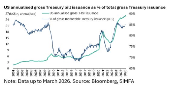 You can see how much bill issuance has increased in the US. This chart is from Chris Woods.