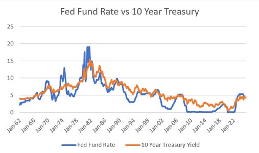 So the question is, does short TLT still make sense? If I think we are still in a pro-labour era, then yes. Back in the 1960s and 70s, when wages rose quickly, the Fed needed to run tight monetary policy (policy rate above the 10 year yield - the opposite of what we saw in the pro-capital era from 1980 to 2020). In concrete terms, I think pro-labour era policy rate tends to be higher than 10 year Treasury yield, and in a pro-capital era, the policy rate tends to be below the 10 year Treasury yield.