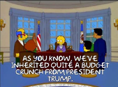 This combined with Conservative tilt of the Supreme Court lead me what will seem an extreme view - but likely true. President Trump and his big tech and religious supporters would probably like to see a the US default on Federal debt, so that the government is forced to shrink. For fans of the Simpsons, the famous “Bart to the Future” episode pretty much predicts this outcome.