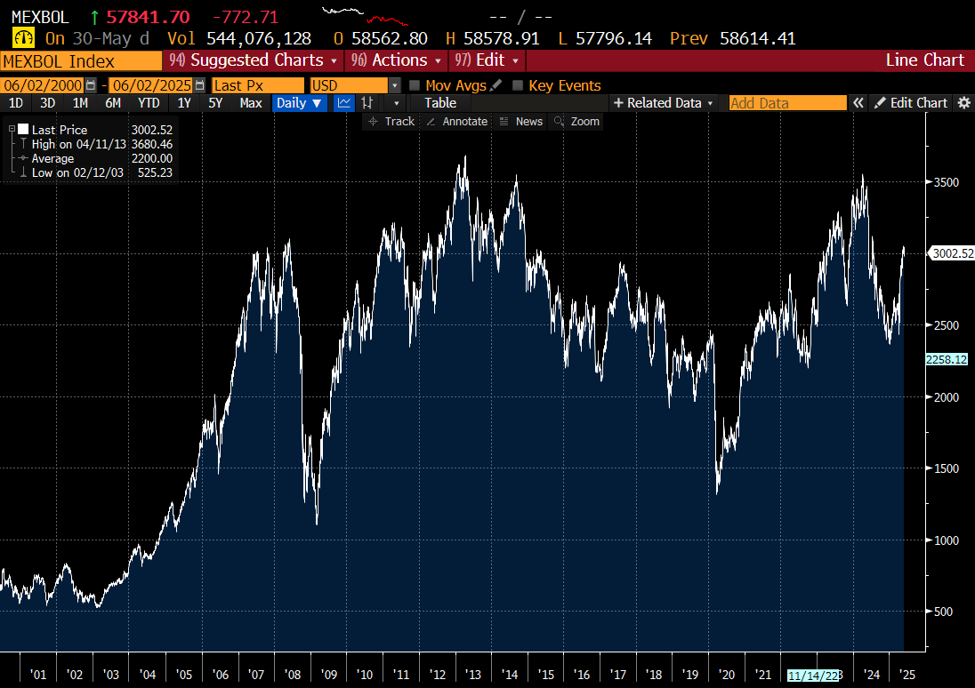What I liked about this analysis was that pro-labour shift gave a prediction that assets markets would not do well. That is that a pro-labour government tended not to be great for stock markets. In Mexico, where pro-labour policy has been implemented has seen its stock market go sideways in US dollar terms.
