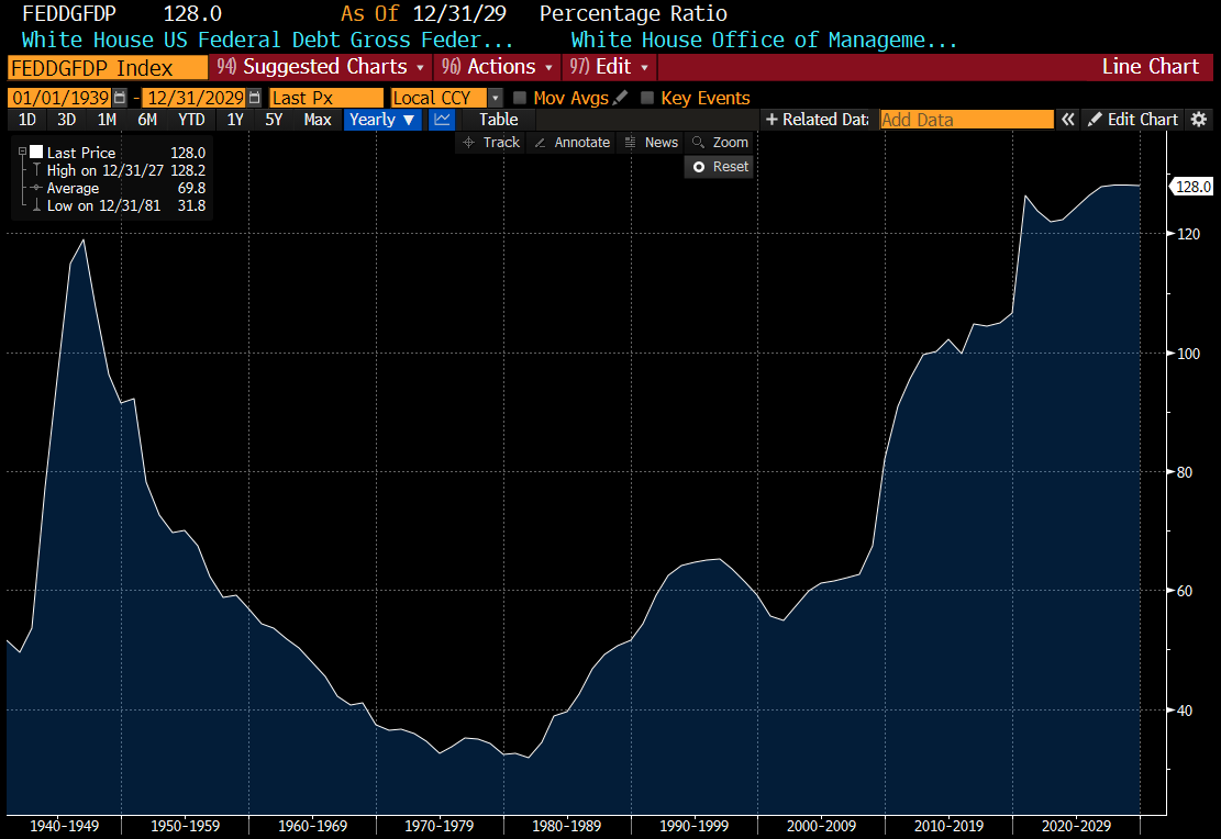 I have started to wonder if the move in gold versus treasuries is signalling something other than a “pro-labour” move. In Trump’s second presidency there has been a strong shift to reduce the power and effectiveness of government. DOGE gutted the IRS and other agencies - and there has been cutting of funding to agencies, and now to various elite universities. What we have also seen with Trump second’s presidency most clearly with Section 889 is the US Government acting to make it difficult for foreign governments to tax US multinationals. What I am seeing, and what makes most sense to me, is that the Trump administration is trying to destroy the power of the Federal government. But why would it do that? Well as I understand it, big government came into existence after World War II to counteract two other strong political powers - the rich elite, and religion. The Spanish Civil War was as much a religious war as a progressives versus conservative war. Much of what big government does in terms of social work was carried out by the church before World War II. Destroying the ability of the Federal government to act would benefit both big business and big religion, who often find their ability to act constrained restricted by government agencies (think anti-monopoly investigations, and legal restrictions on religious displays in public spaces). Here is where it gets interesting I think. If you want to destroy the Federal Government, how would you do it? Well the most obvious way would be to make it unable to meet its financial obligations. The first step build up debt levels. Job done.