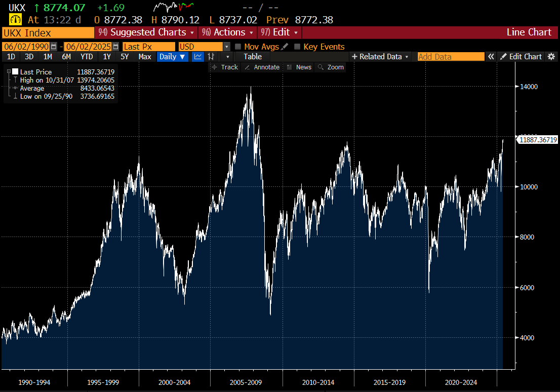 The UK, which I also feel has moved pro-labour has also had a sideways moving market in US dollar terms.