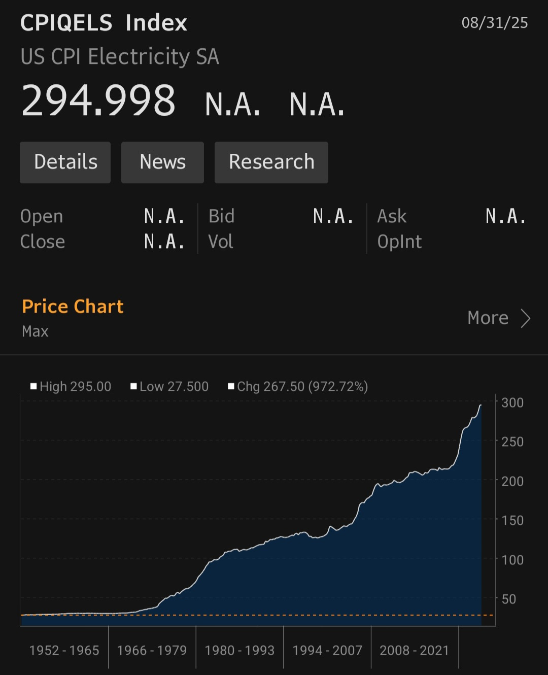 I think the simple reason is that semiconductor and tech inflation is taking over from oil as the driver of inflation. Electricity CPI is NOT being driven by energy prices - but by AI capex.