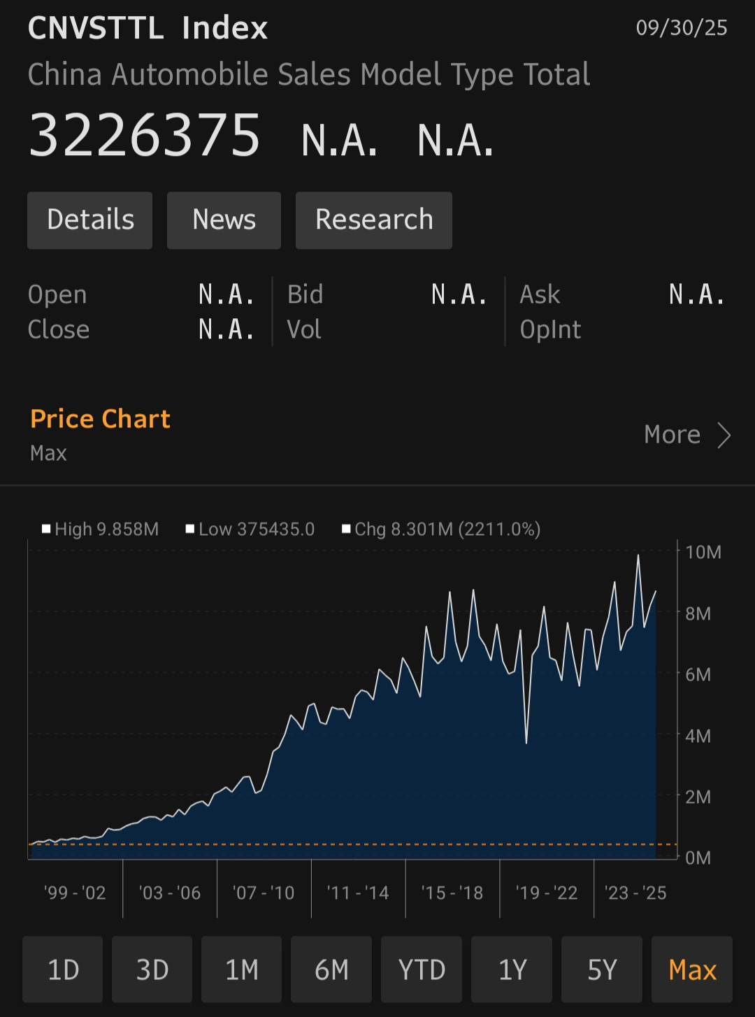 Even though I have been sceptical of AI, many of my “non-tech” stock picks have been influenced by the rise and rise of semiconductor and computing as the driving force of growth. When I think.back to the commodity super cycle from 2000 to 2010 - this was driven by China catching up to the old oil centric economic model, something the western world did in 1960s to 80s. The China boom was like a big franchise sequel - made mainly for old people (industries) and totally derivative. China car sales are a good example. The US and Japan were ex-growth auto markets in the 1980s.