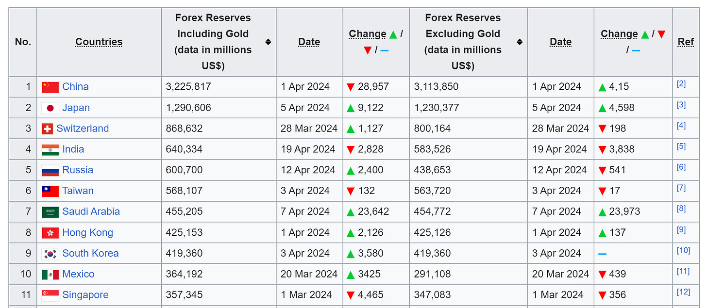 In absolute terms, China and Japan are by far the largest holders of foreign exchange reserves.