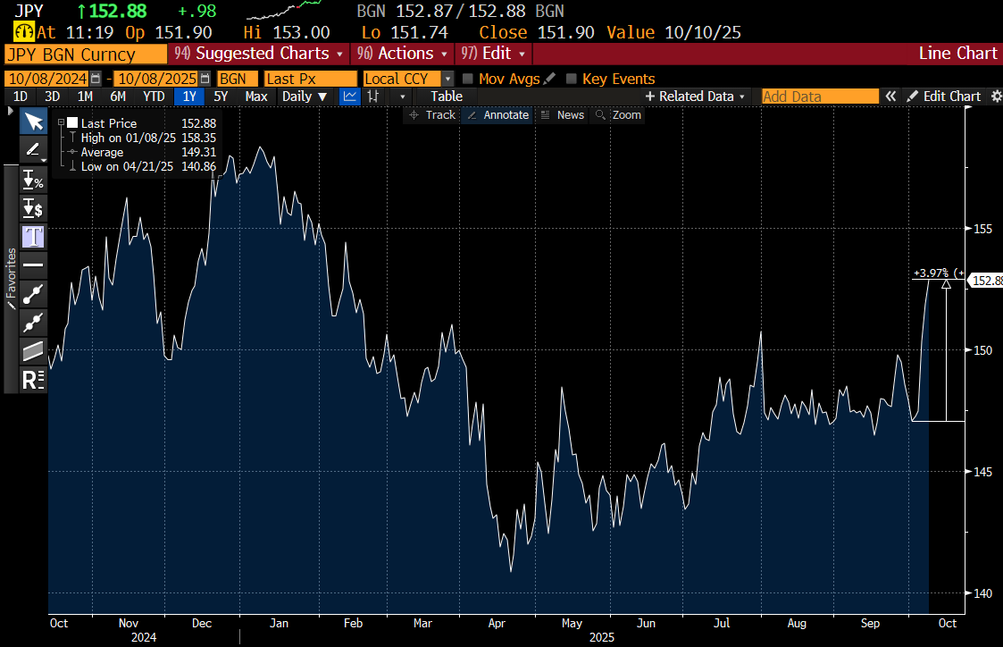 In an interesting twist, the BOJ wants to raise rates, while the incoming LDP leader Takaichi is keen on them not raising rates. When would Japan want a strong yen again? My guess is when the US and/or China put pressure on them to stop. But I also think the Chinese take some measure of pleasure from seeing the Yen weaken.
