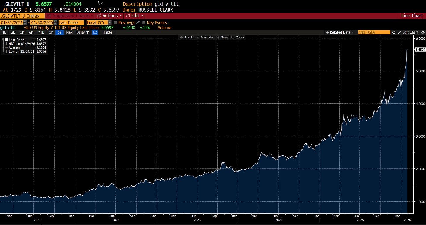 I hate making money from being long gold. When I was bearish China back in the day, and running net short, a lot of my investors were also long gold. I told them it was a bad idea, but they held on to their gold and gold miners and got smoked. They were not quite Smeagol/Gollum - but they were close. Here I am “Smeagolling” my way to making money. I have been long gold as part of a pair trade of short US treasuries for years - the basic driver being that the Chinese/Indians/Brazilians etc would never by a US treasury for their foreign currency reserves again, and crypto was still untouchable, which only left gold. Of course, if the US got serious about monetary policy (like putting interest rates to 7% or so), then gold would suffer, so I have been long gold, short long dated treasuries. It has been good.