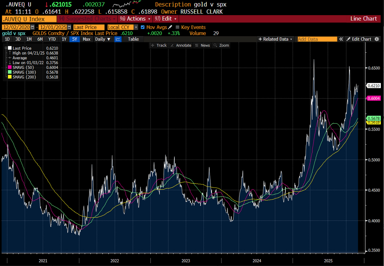 For a brief period in November, competition and potentially lower prices threatened to break out in the tech world, as finally some sort of competition to Nvidia’s GPU emerged in the form of the Googles’ TPU. But the gain to Google, was seen to out weight any loss to Nvidia, and the Nasdaq ended higher for the month. The weakness in Nvidia seemed to set off a brief rotation out of cyclicals and into defensives.
