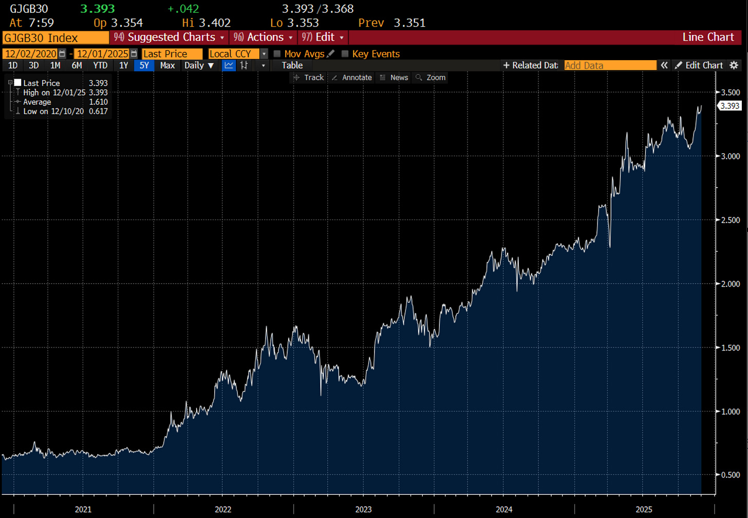 Away from tech, Japanese 30 year bond yields touched a new high, just shy of 3.4%.