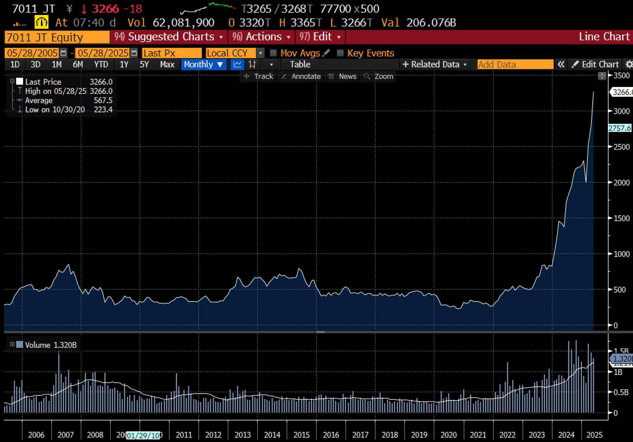 But what Rheinmetall shows is that the market is willing to pay a lot for government protected growth. I also thought Mitsubishi Heavy could be an interesting stock (the maker of the famous Mitsubishi Zero). This has also rerated massively. Whether this is worth chasing or not is hard call, as it has a lot of different businesses.