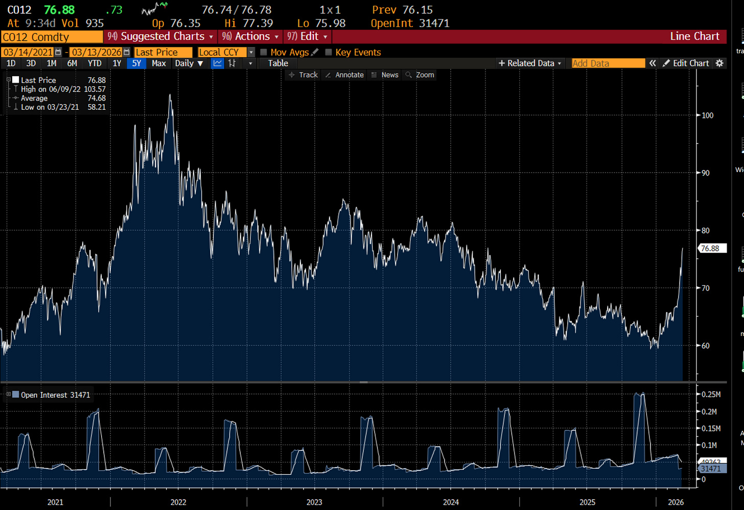 It has been plain that a war with Iran has been coming for awhile. The question was what would it look like? Would it be a Venezuelan style coup d’état? Or would a popular uprising sweep away the ancien régime? Or would it become a quagmire. Two weeks in, and the likelihood of the first two outcomes, which would have been ideal, are looking less likely, and a quagmire is becoming more likely. In market terms, this can be seen in the 12mth oil future is now beginning to break out.