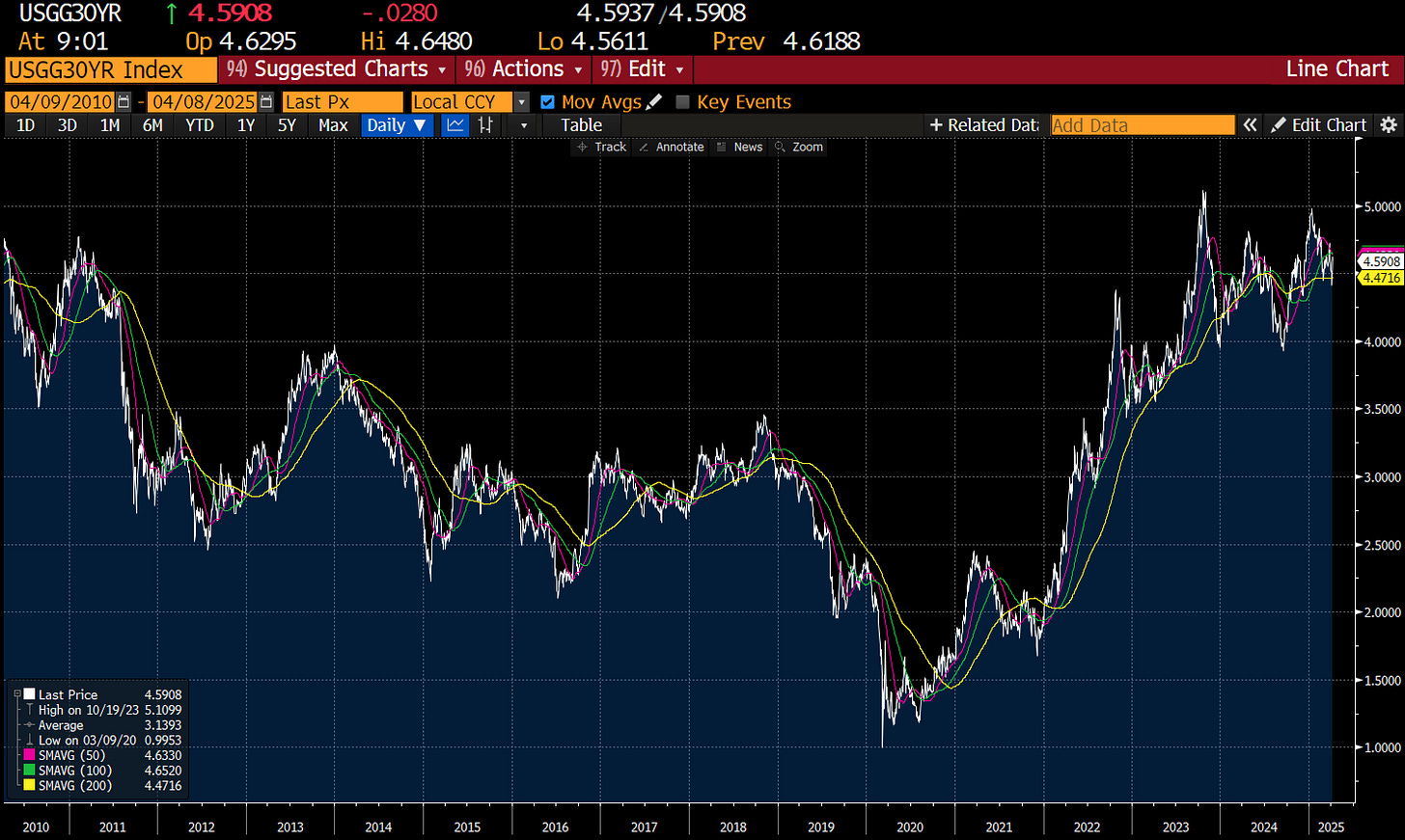 Just a quick post. I have been bearish on Treasuries for a while. Why? I see investor mindset has completed changed on fixed income from 10 years ago. Back then, no one thought buying a 30 year Treasury at 4% was a sensible trade, but when yields moved to 1% during Covid, everyone became convinced of their ability to rally when thing are bad. But for me bonds reflect politics - and politics is no longer deflationary.