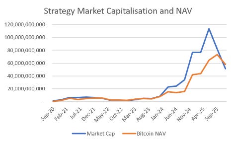 And here is the problem. When Strategy traded above its NAV, it made sense to sell equity to buy bitcoin. But now it is trading below NAV, it would make sense to sell Bitcoin to buy back shares (in theory you are buying Bitcoin at a discount).