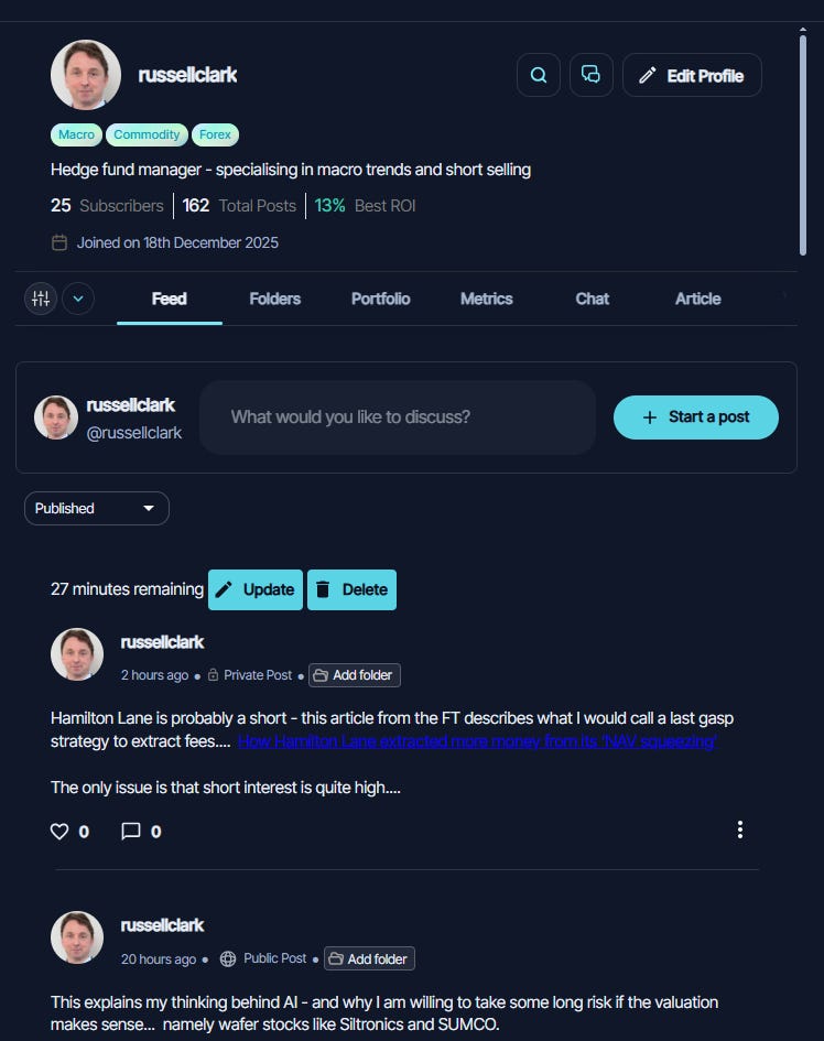 With Slice, I think it works better with the “short selling” part of my business. Short selling naturally requires more trading, and by definition can not just short and forget (unlike long investing where buy and forget works). I also know that more trading oriented of my substack subscribers are very keen on short selling (as a rule, people tend to pay more for short selling as it so difficult to do). For that reason, I am skewing my Slice page to more short focused ideas.