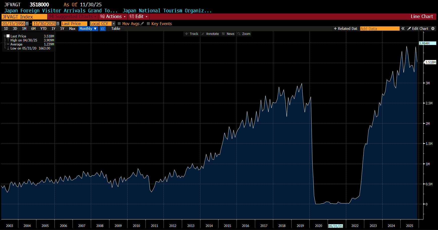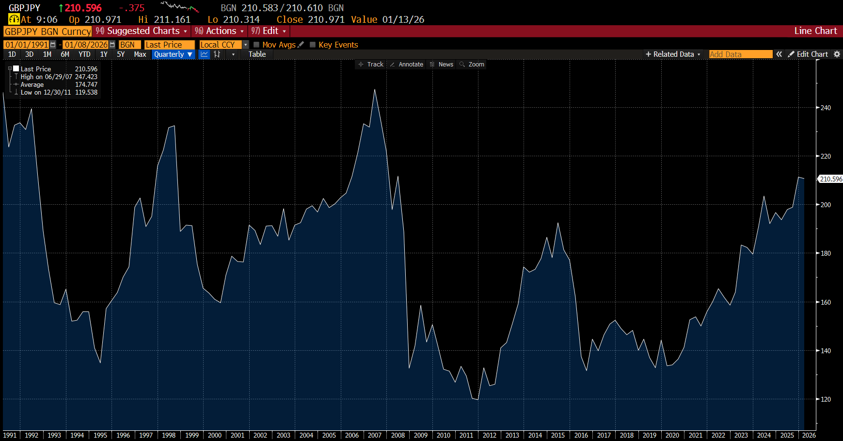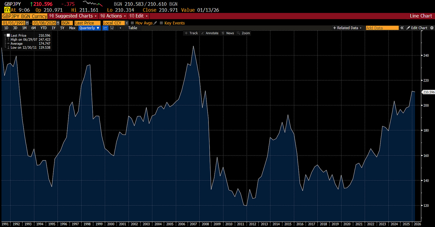 Getting to Japan was expensive, and hotels were also not that cheap, but eating in Japan is cheap. I think this has caused one of the more striking features of Japanese tourism boom, which is the rise of Asian middle class tourists. Getting to Japan from other parts of Asia is much cheaper than from Europe. Certainly I was struck by the number of Indian and Filipino tourists we saw. The idea of Japan as a holiday destination for middle class Asians would have been preposterous in the 1990s, but it is a reality today. But the fact of the matter, is that Japan is cheap place at the moment. GBP/JPY is the exchange rate that I think in which is currently at 210 - which is a level we saw back in the 1990s and a few times since.