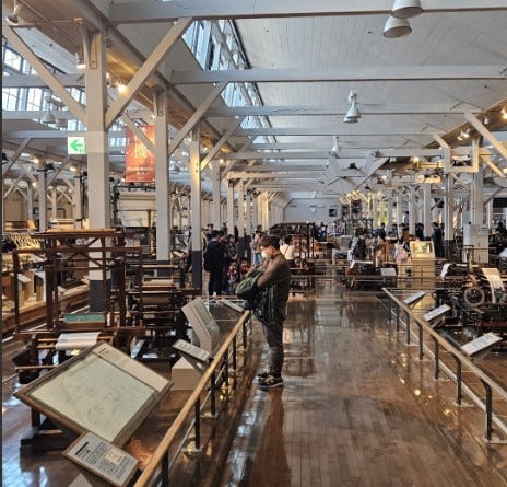 This is well off the beaten track, but there were a surprising number of foreign tourists here - mainly for the Naruto theme park. Naruto is a manga/anime series I am not familiar with, but my 12 year old loves. My wife and I were more excited by the Godzilla themed rides. After Awaji, we returned to a more usual Japan itinerary of staying in Osaka, Kyoto and Tokyo although we did take a day to go see the Toyota Commemorative Museum of Industry and Technology in Nagoya. While you think this would be about the development of the Japanese car industry, its most interesting part is the development of the loom industry. Toyota was a loom and textile company well before it was an automotive company. To see the development of looms through this room is to see the development of the industrial age. Highly recommended.