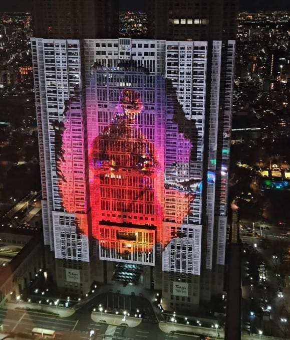 I met my wife in Japan over 30 years ago. We were both exchange students to Kansai University in Osaka in the 1990s. We were only ever friends in Japan, but when I moved to London in 2002, we met up again, and started dating in 2003 and have been together ever since. This year will be 20 years since we married. We had always talked about taking our two boys to Japan to see where we met, and with our oldest being 15, and our youngest at 12, this Christmas and New Years seemed like a good time to go. As the picture above shows, its hard not to like a country that likes the irony of using Tokyo building as a backdrop to a Godzilla movie where Tokyo buildings are about to get destroyed.