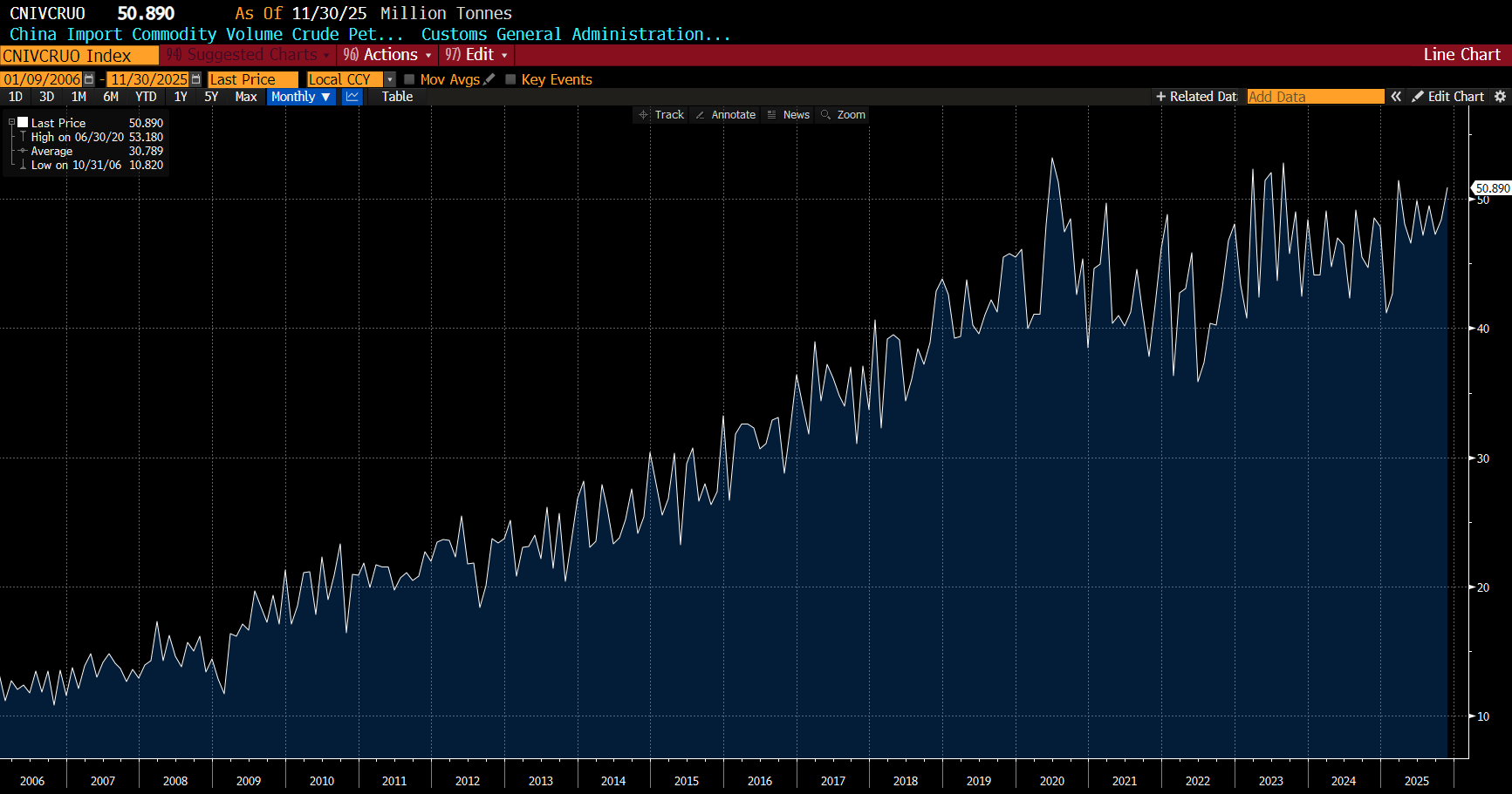 Trump seems to have leverage over Europe, Japan, Latin America and the rest of Asia, either through trade or defence policies, but China remains outside of his control. If anything the rare earth trade seems to give China the leverage it needs. So what can President Trump do? Well China is the largest crude oil importer.
