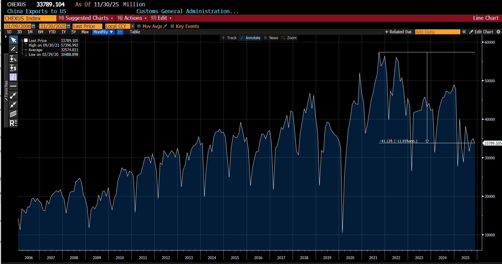 This is despite Chinese exports to the US falling but nearly a third. I suspect Team Trump assumed tariffs would give them leverage over the Chinese, but this has not proven to be the case.